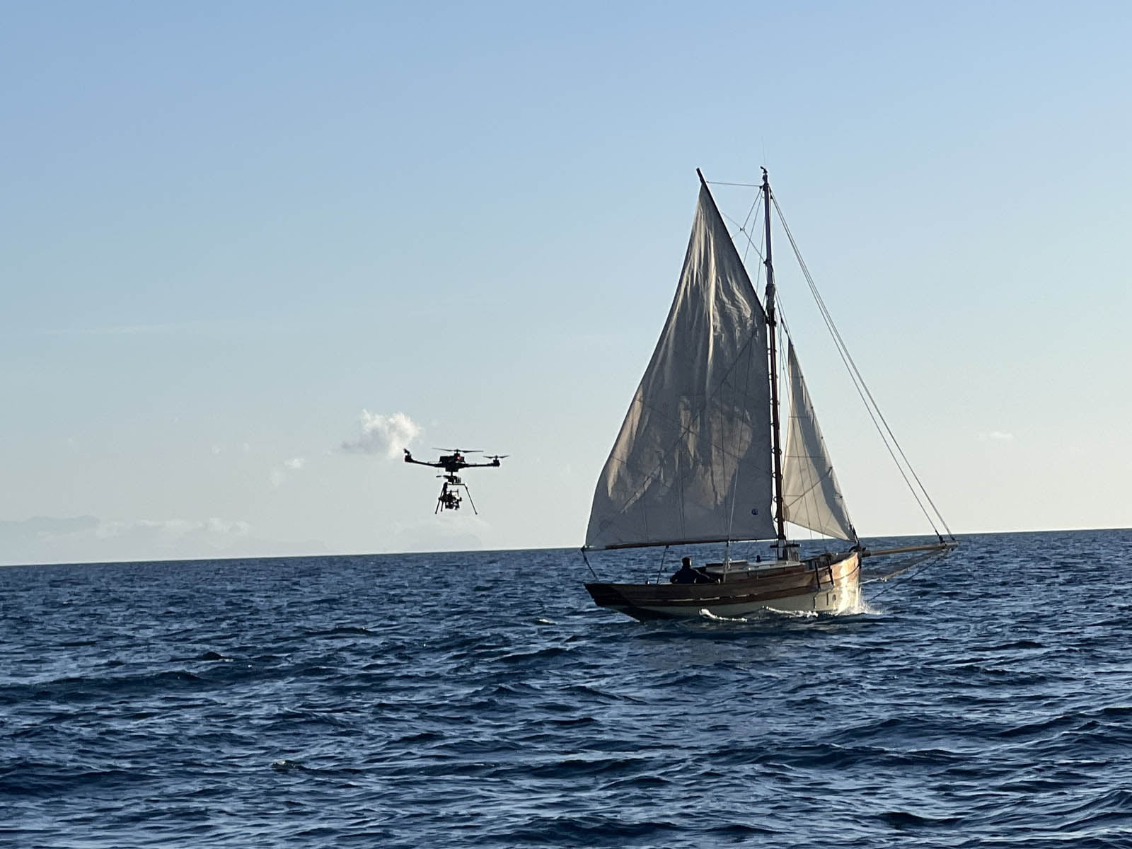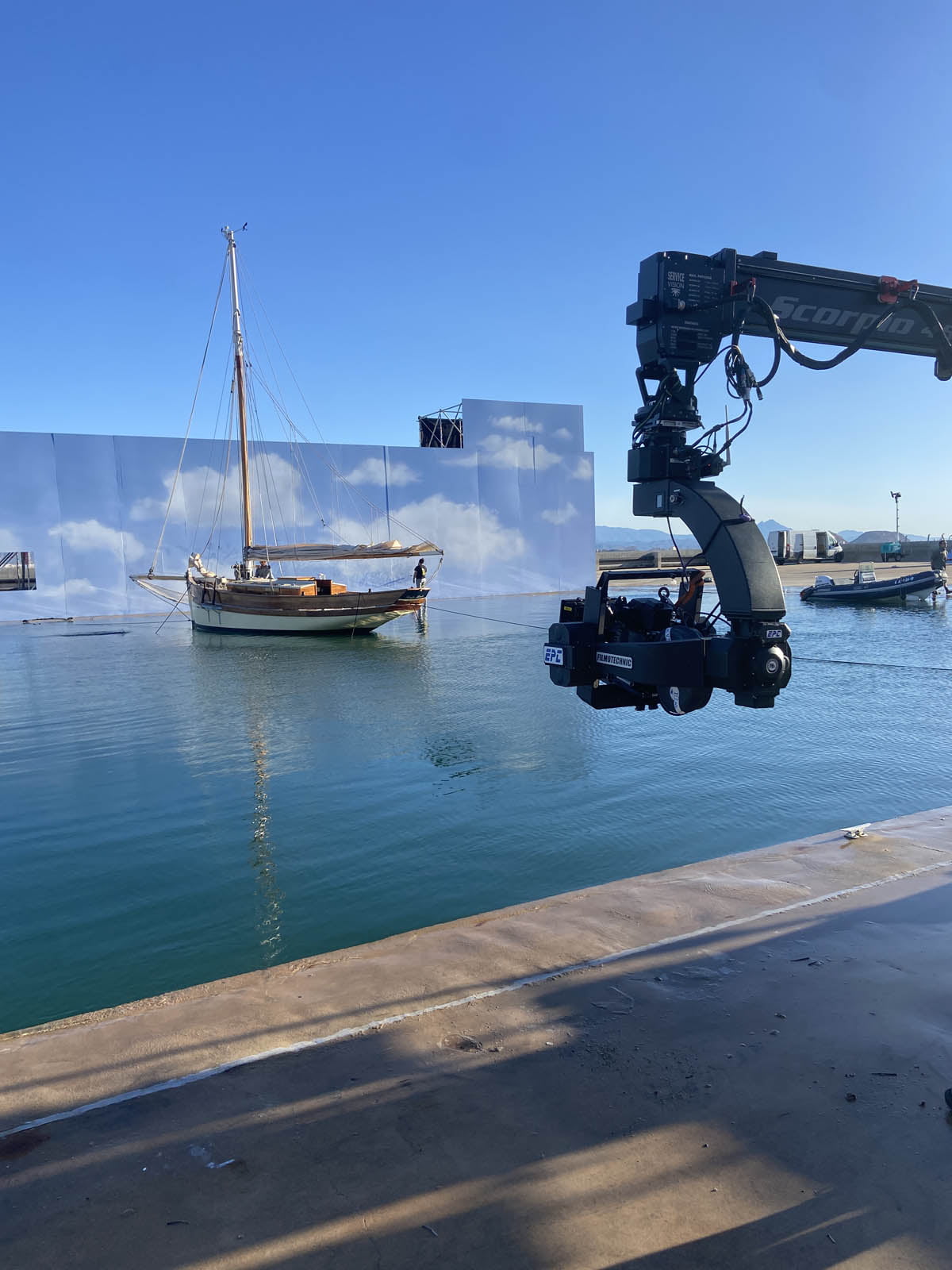 Recreating the iconic final scene from THE TRUMAN SHOW, we managed the complex logistics of transporting a unique sailboat from Mallorca to the Ciudad de la Luz water tank in Alicante. This involved cranes, custom sail making, and pulley systems to move the sailboat in the pool, alongside wave generation for realistic effects. We also conducted open sea shooting with an ALTA X drone and ALEXA camera, supported by boats for equipment, drone operations, and water safety. Currently in postproduction.